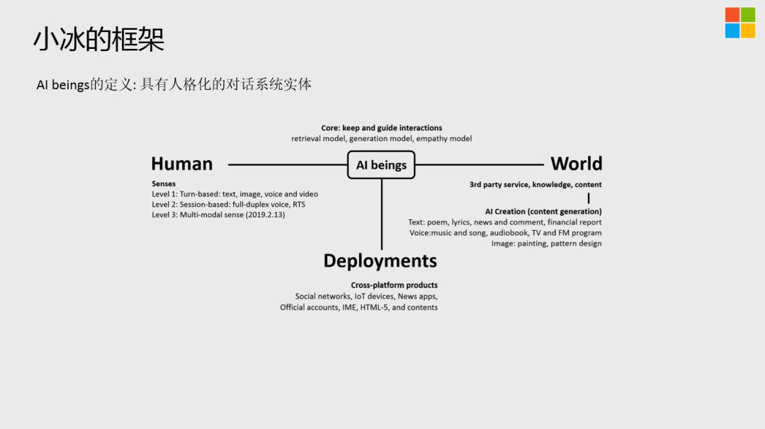 导读:微软小冰是领先的跨平台人工智能系统,本次分享将介绍微软小冰最新的对话技术框架,以及在这套框架的基础之上,如何一步步构建人格化的对话系统,并且在社交娱乐及实用场景当中的具体运用。主要包括:
