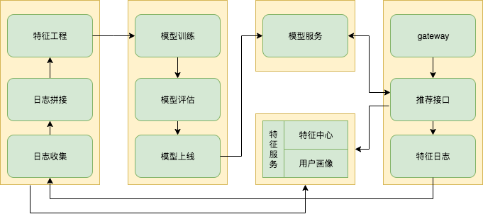 特征的提取和构造单独抽出来,作为一个服务,客户端先请求特征服务,由特征服务构造特征并请求模型预估服务。这种方案下特征处理在模型外部,输入到模型的是处理好的数值特征。