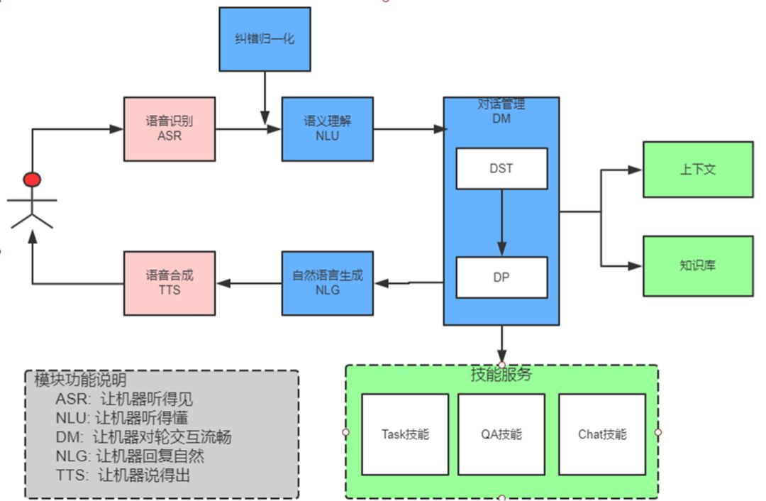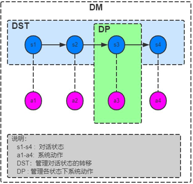 DST 主要用于状态追踪,这一模块维护对话的上下文状态、进行上下文语境的管理、意图槽位继承等。DP 是决策模块,它根据 DST 记录的当前系统状态,进行系统动作决策。