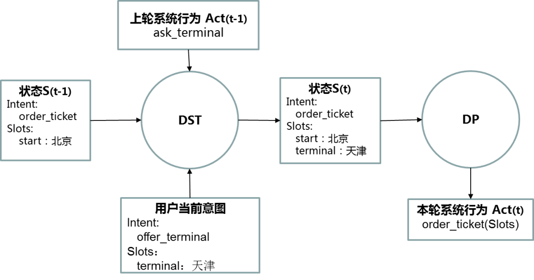 下图展示了在订票场景下的一轮对话中,对话管理系统的流程: