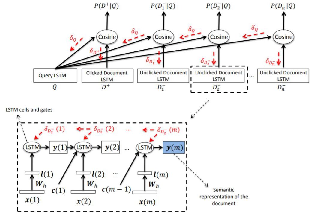 这里重点讲一下我们的 LSTM-DSSM 模型,模型示意如下: