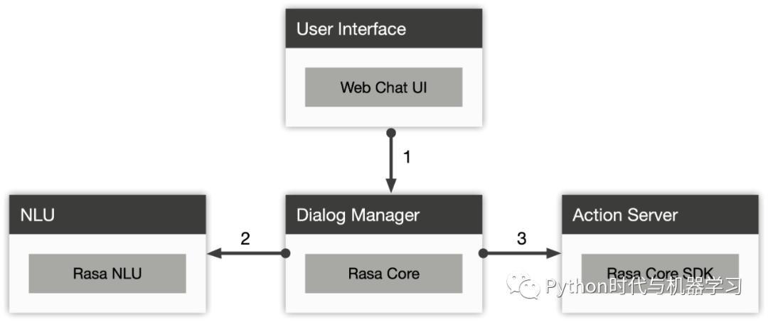 User Interface | WeatherBot_UI | 负责提供用户 UI ,方便用户使用,Rasa Core 支持和多种即时通讯软件(IM)的整合,Rasa Core 提供了一种称之为 Channel 的特性来方便接入 API。 |