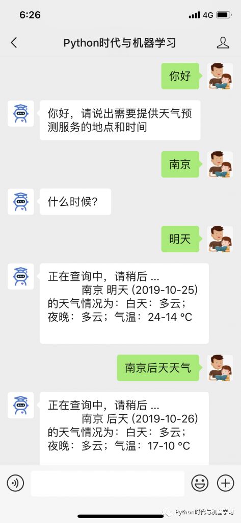 我通过rest api的方式把这个rasa 天气查询接口对接到"Python时代与机器学习"公众号了,这个公众号之后将主要作为Rasa聊天机器人的测试账号,欢迎关注: