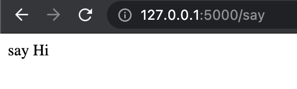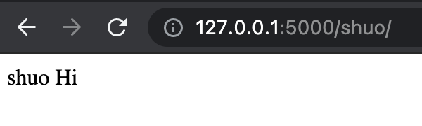 from flask import Flaskapp = Flask(__name__)@app.route("/say")def jizaisay(): return "say Hi"@app.route("/shuo/")def jizaishuo(): return "shuo Hi"app.run()