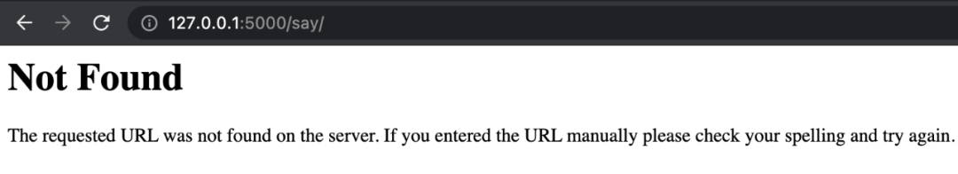 我们运行上面这段代码,在前端测试时发现。@app.route("/say")这部分仅支持以 /say 形式访问。