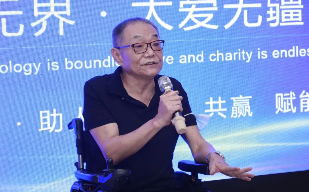 深圳市郑卫宁慈善基金会主席郑卫宁先生在开场致辞中引用了英国诗人拜伦的一句诗:“你的旗帜虽然残破,但仍在雷雨中飘扬;你的号角声虽逐渐减弱,但高过暴风雨中最高的风浪。”为这次活动定下了始终不忘初心,坚持残友助残理念的基调。