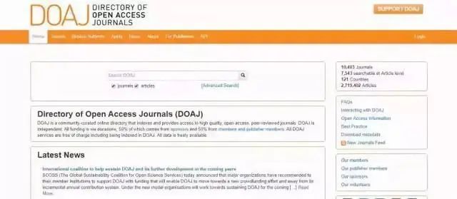 DOAJ收录的OA期刊数量非常多,属于目前最好的OA期刊目录网站。目前DOAJ除了查询OA期刊外,还可以查询部分期刊的文章内容。