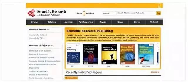 Scientific Research Publishing(科研出版社,简称SRP)是一家国际综合性开源学术期刊出版机构。目前已有国际开源英文期刊近三百本,所有期刊都是开源的(OpenAccess,或称开放存取,简称OA),可免费下载所有期刊全文,所有期刊均回溯至创刊。多数期刊已被CAS, EBSCO, CAB Abstracts, ProQuest, IndexCopernicus, Library of Congress, Gale, CSP等数据库全文或摘要收录。