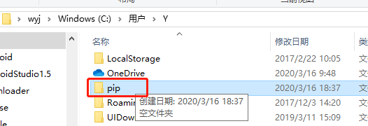 (2)接着在文件夹下创建一个名为pip的文件夹,就像下图这样