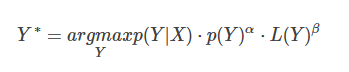P(Y)就是语言模型,而L(Y)是一个语言模型长度的奖励,如果L(Y)是基于词的语言模型,那么L(Y)就是词的个数,如果L(Y)是基于字符(character)的语言模型,那么L(Y)就是字符的个数。因为越长的句子概率越小,如果不加这个奖励的话,语言模型总是会倾向于选择短的句子。超参数α和β通常通过交叉验证来选择。