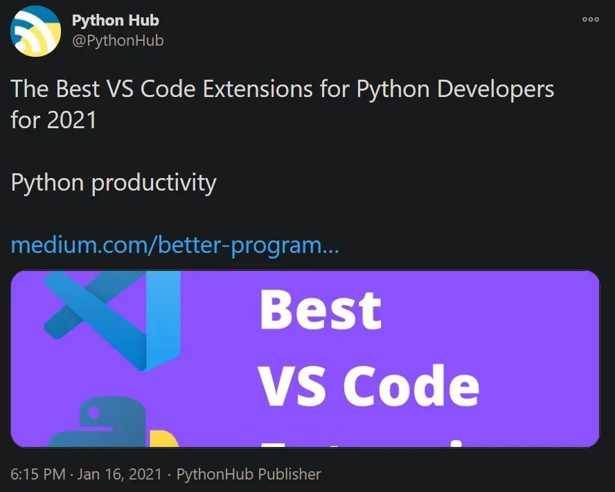 Visual Studio Code(简称 VS Code)是一个由微软开发,同时支持 Windows、 Linux 和 macOS 等操作系统的免费代码编辑器,它支持测试,并内置了 Git 版本控制功能,同时也具有开发环境功能,例如代码补全、代码片段和代码重构等。VS Code 是程序员常用的代码编辑器之一,是一个可在所有平台上使用的开源、可扩展和轻量级的编辑器。这些品质使微软的 VS Code 大受欢迎,并成为 Python 开发的绝佳平台。VS Code 还拥有大量扩展,可以帮助提高开发效率、提升开发幸福感。对于 Python 开发者来说,哪些 VS Code 扩展最值得推荐呢?开发者 Juan Cruz Martinez 列举了 2021 年最值得向 Python 开发者推荐的 VS Code 扩展,包括 python、Python Snippets 以及 Python Preview 等。