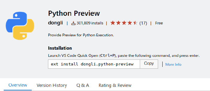 Python 扩展下载地址:https://marketplace.visualstudio.com/items?itemName=ms-python.python