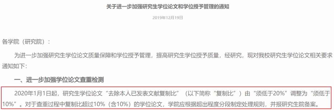 其中最受关注的是,研究生学位论文的“文献复制比”由“须低于20%”调整为“须低于10%”。
