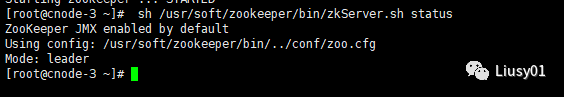 //配置zookeeper数据存放目录dataDir=/usr/soft/zookeeper/zkData//客户端端口clientPort=2181//分别配置集群节点信息server.1=cnode-1:2888:3888server.2=cnode-2:2888:3888server.3=cnode-3:2888:3888