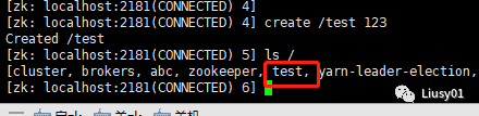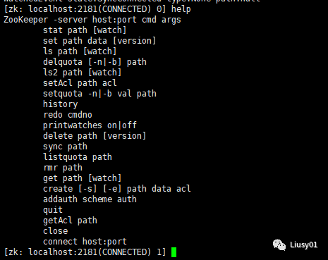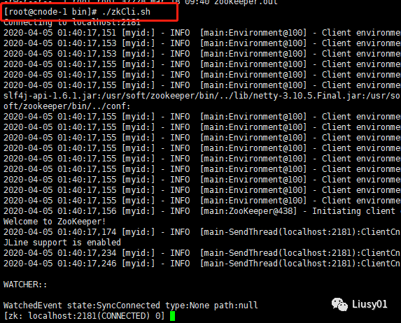 (1)连接客户端,进入bin目录下执行sh zkCli.sh start命令