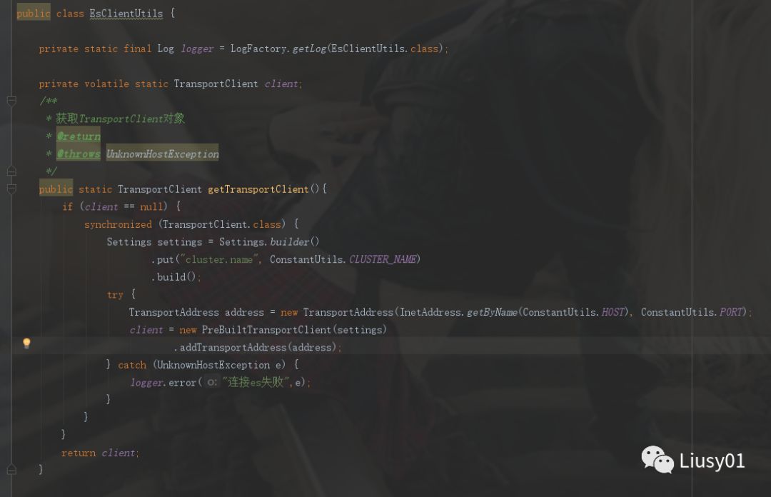 对es的操作是通过TransportClient的,需要先创建TransportClient