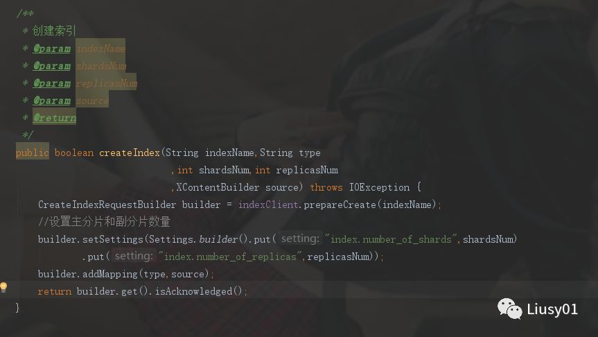 使用XContentBuilder设置索引的,也可以用Map或者直接是json字符串