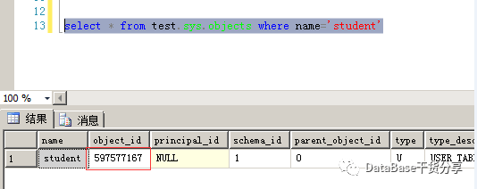 2、查看student表的object_id(和一会找出来的对比一下是否一致)