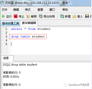 4、使用dbinfo用户登录数据库删除student表