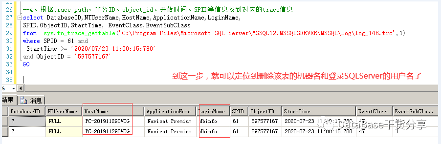 8、根据trace path,事务ID、object_id、开始时间、SPID等信息找到对应的trace信息
