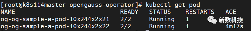 使用kubectl apply -f 运行该CR即可在指定的两个worknode上创建一主一从的openGauss集群,并给每个数据库实例所在的pod设置对应的IP,并且使用指定的读写服务端口。