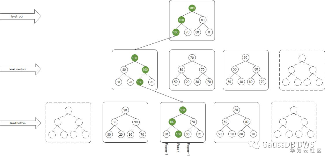 level root和level medium都是用来查找level 2中的FSM页面的 level bottom是用来查找符合要求的heap页面的