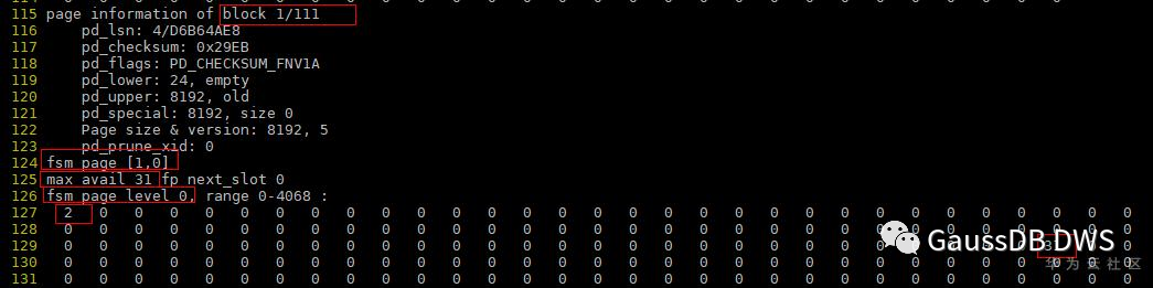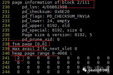 FSM查找和维护的逻辑并不复杂,但是整个过程对外是不可见的。因此GaussDB(DWS)提供了pagehack工具来读取FSM文件,帮助查看当前数据页的空闲空间情况。