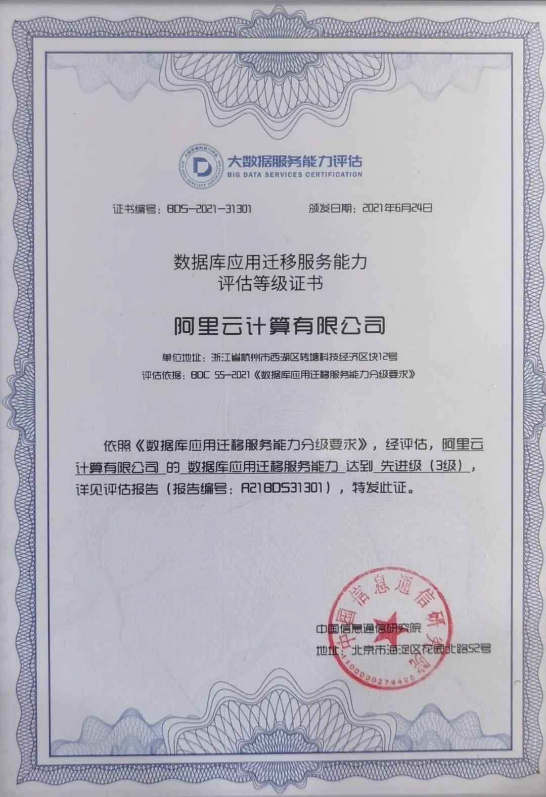 6月25日,记者采访获悉,经中国信息通信研究院(以下简称“信通院”)的严格测试评定,阿里云数据库应用迁移服务顺利通过了“数据库应用迁移服务能力”评测,总得分在所有参评厂商中排名第一,成绩定级为最高级别的先进级(3级)。