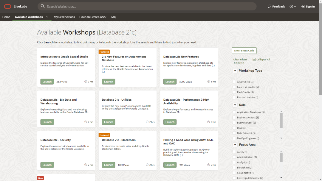 通过 Oracle LiveLabs,您可以使用 Oracle 的工具和技术来进行实验和开办研讨会。实时体验 Oracle 的最佳技术!Oracle LiveLab的介绍可参考之前的一篇微信文章:来吧,来吧!相约Lab!