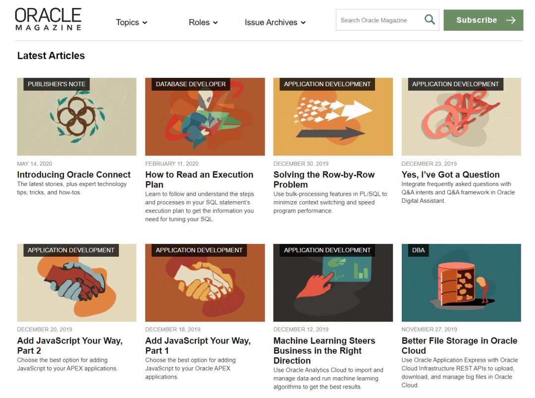 绕了一大圈,再说回Oracle Connect。2020年,Oracle决定将Oracle Magazine和Oracle Profit刊物整合为新的Oracle Connect网站,为读者提供更具吸引力和更及时的内容。所以,该有的内容仍然会有,老的内容也可以从归档中找到。