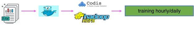 •客户端以及服务端数据先通过统一服务Sink到HDFS上•基于基HDFS数据,统计特定维度的总量、分布等统计类特征并推送到Codis中•从Codis中获取特征小时维度模型增量Training,读取HDFS文件进行天级别增量Training