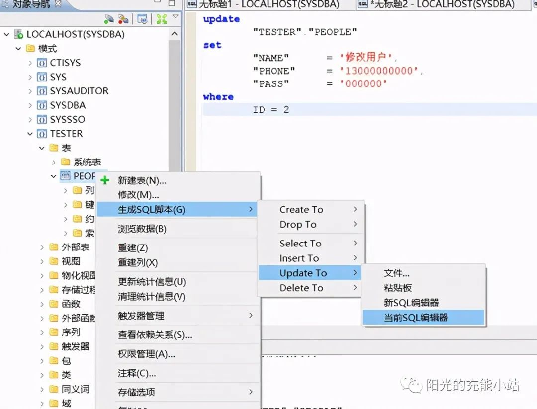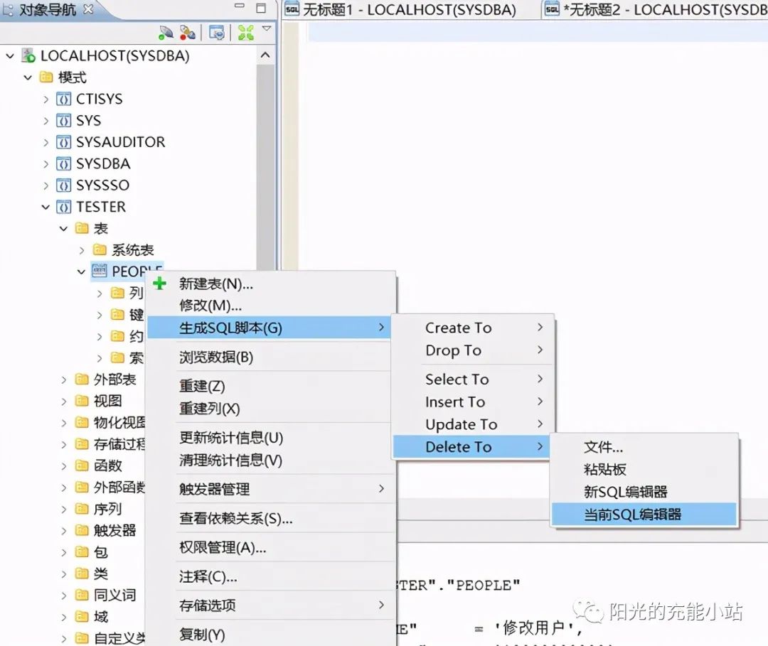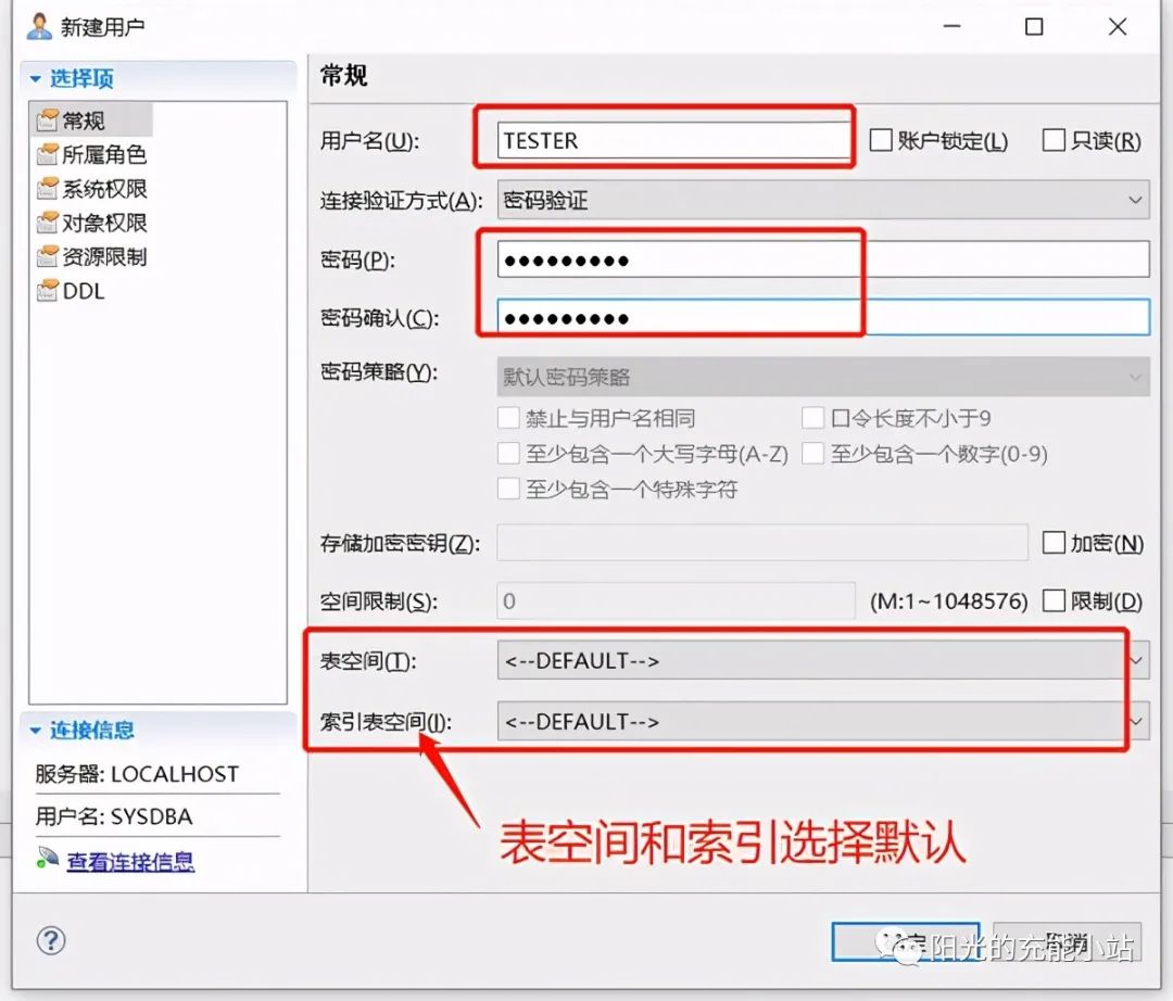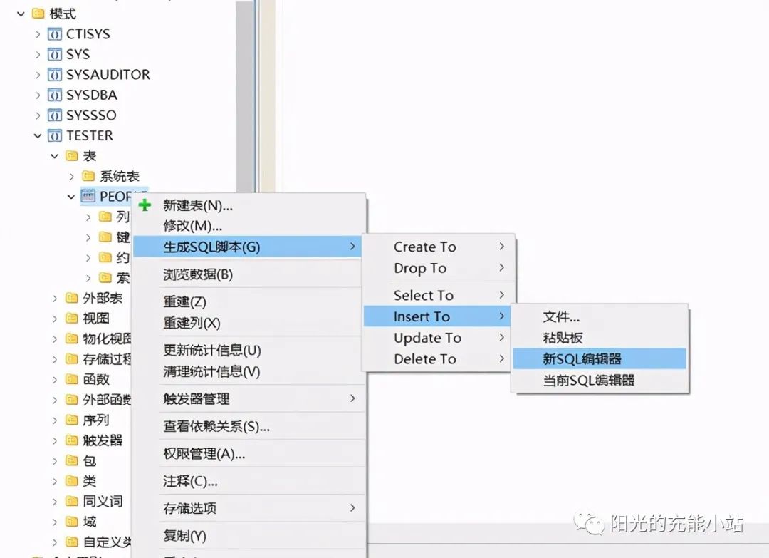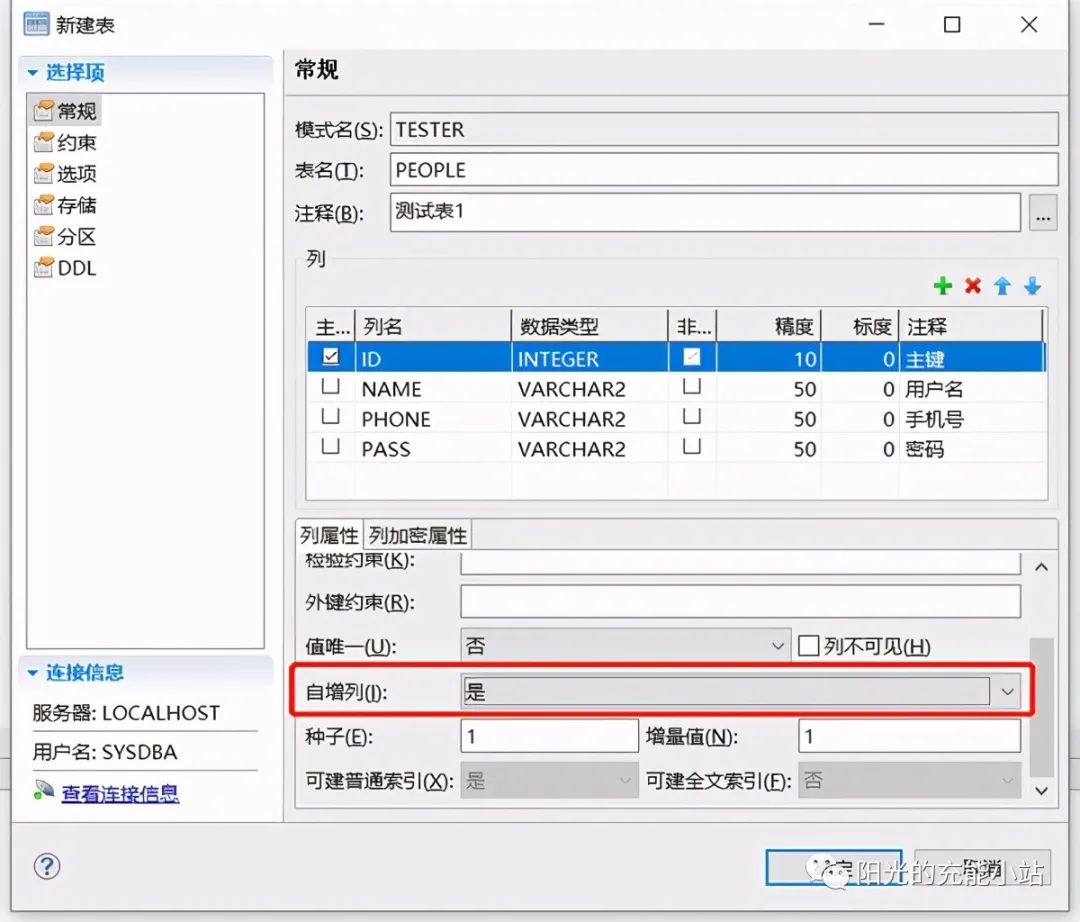 (1)在TESTER表空间栏目【表】右键,选择【新建表】