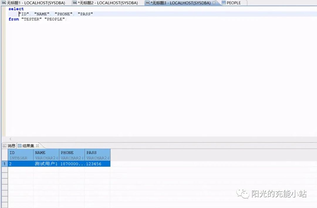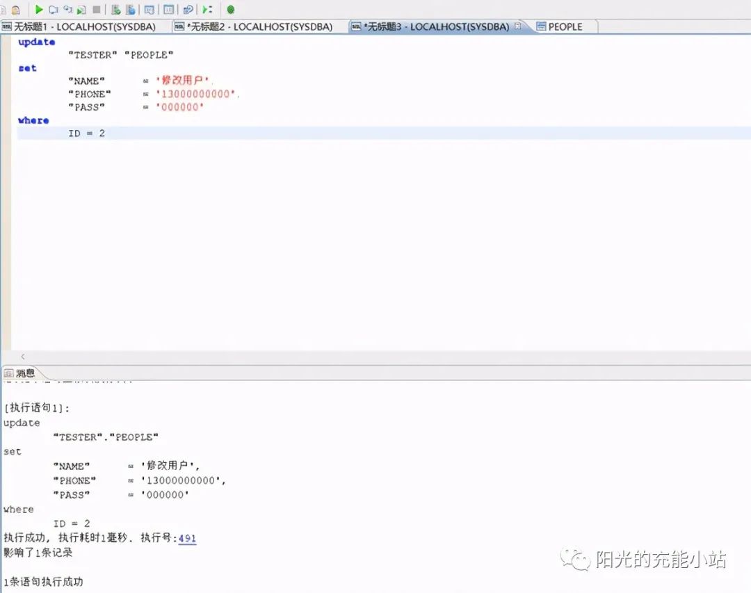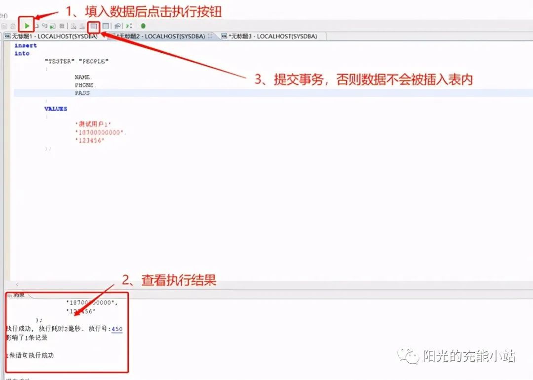 写入测试数据库后,点击【执行】按钮,执行结果会打印在下方消息框,和Oracle一样,执行后还需要手动提交一下事务或者在sql中添加 commit 关键字提交事务。