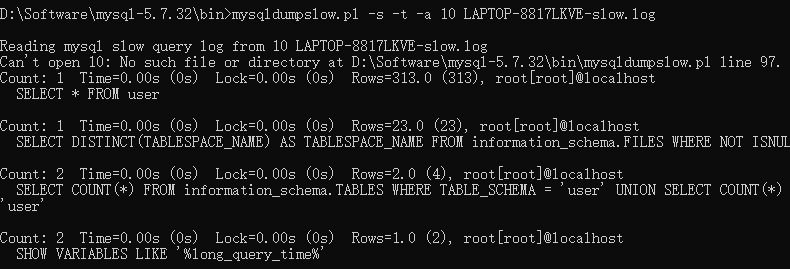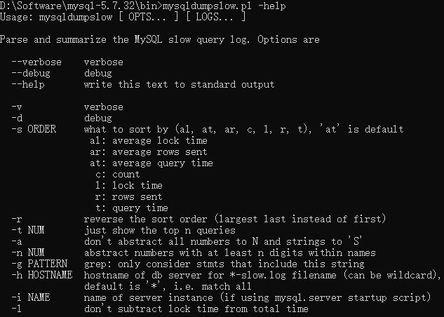 MySQL 内置了 mysqldumpslow 这个工具来帮助我们分析慢查询日志文件,Windows 环境下使用该工具需要安装 Perl 环境。