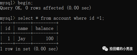 事务A先查询Jay的余额,查到结果是100