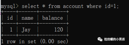 接着回事务A的窗口,再查account表id=1的数据,结果如下: