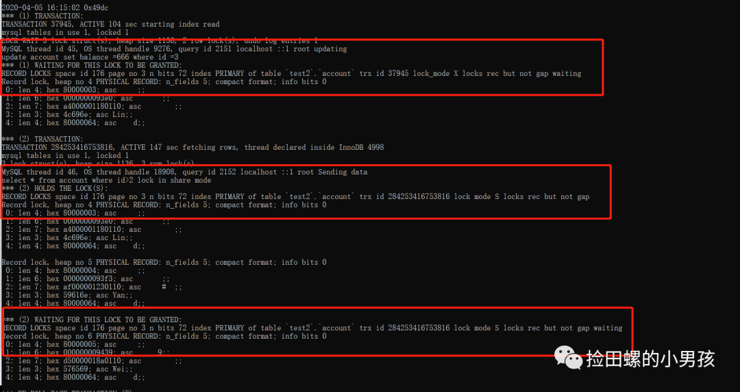 记录锁的事务数据(关键词:lock_mode X locks rec butnotgap