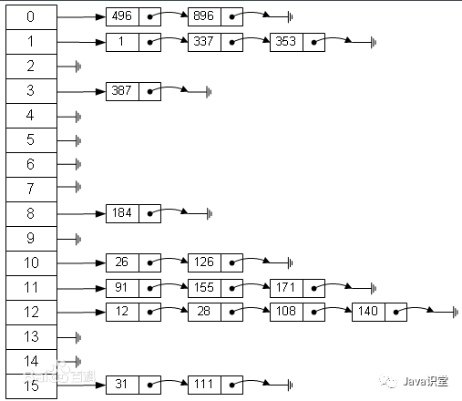 数据库一般采用除法散列的方法,即取k除以m的余数,将关键词k映射到m个槽的某一个去,即哈希函数为h(k) = k mod m,当发生冲突时,即两个关键字可能映射到同一个槽上,采用链接法,即以链表的形式保存冲突的关键字,和HashMap类似