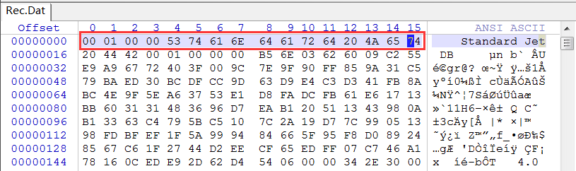 通过winhex底层查看文件头我们可以发现该数据为Access数据库且版本为2007以前的版本。如下图: