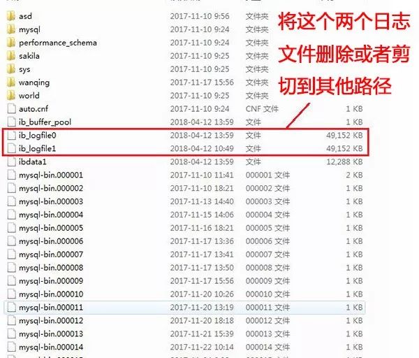 2)在重置密码后重新启动MySQL服务,若MySQL服务无法启动;造成该错误的原因是日志文件发生错误,采用之前同样的解决方法:在任务管理中将mysqld.exe进程结束后把日志文件删除或者剪切到其他路径。