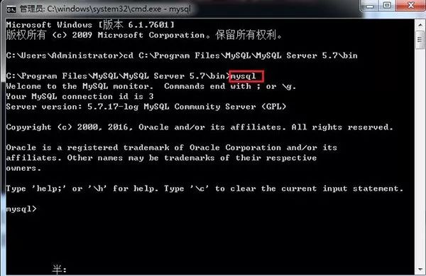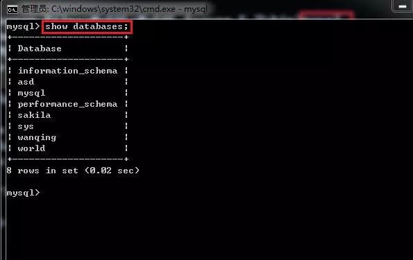 3)在新打开的cmd命令行,直接输入mysql,不需要带任何登录参数直接回车就可以登陆上数据库;