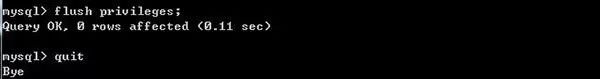 7)刷新数据库mysql> flush privileges;之后退出MySQL: mysql>quit;此时MySQL密码已经重置成功;
