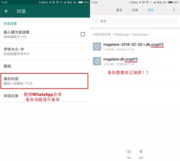 另一种方法是将WhatsApp应用降级到还没有备份加密的版本。WhatsApp 2.11.431版本是其最后一个不进行强制备份加密的版本,所以我们的方法就是在不删除数据的前提下,把应用降级到2.11.431以下然后进行备份提取。