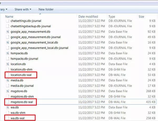 msgstore.db中存储了聊天记录,wa.db中存储了联系人清单。