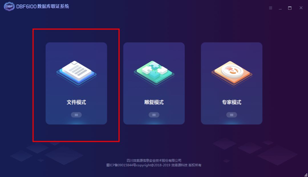 1、在DBF6100数据库软件首页选择「文件模式」;