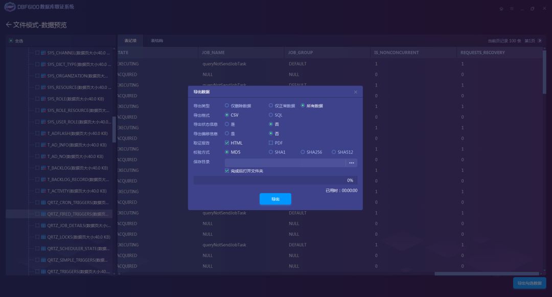 4、选择包含案件所需数据的「表」,进行「数据导出」。