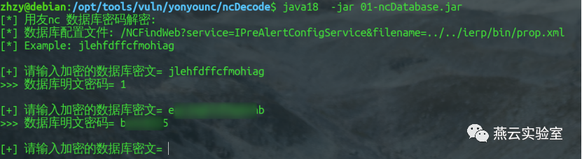 当获取用友nc权限获取数据库账户密码时均为加密格式,这里可通过工具进行解密。